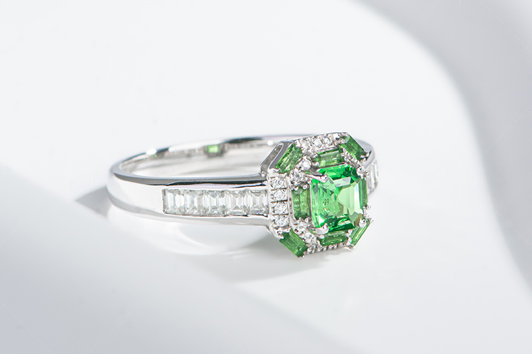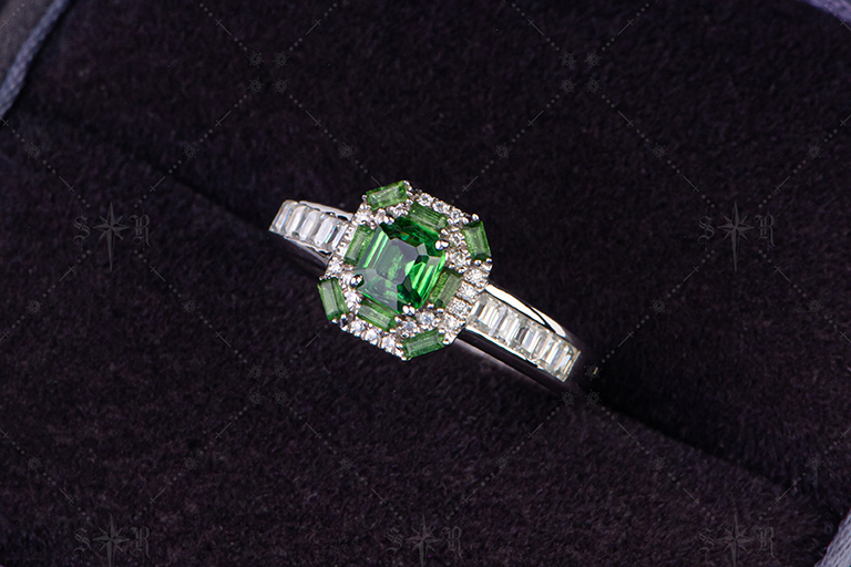 R052翠影方华 中性款沙弗莱戒指