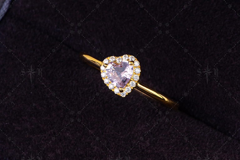 不规则的爱心像手写的情书,带着一点任性与温柔。 中央那枚帕帕拉恰蓝宝石泛着独特的粉橙调,像是黄昏里的一抹羞涩;周围以密集小钻环绕,围钻如光的微粒,在指间流动,既闪耀又不张扬。 9K金细致托镶,线条纤细轻盈,适合日常单独佩戴或与其他戒指叠戴,呈现出甜美而大方的气质。 现为14号戒圈,可按需改圈,既是自赏也可作礼赠,给平凡日子添一抹温柔光芒。 此款为我们原创常规可选款,现有一枚成品现货。 若需更换主石可联系客服定制同款(主石需另行购买)。 直接选款定制,不仅可以免设计费,而且出货更快;同时因主石不同,最终成品虽款式相同,却每一枚都是独一无二的。 我们可按您的戒圈号重新建模,材质可选9k/14k/18k,欢迎咨询匹配您心意的宝石。