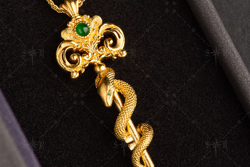 N578金蛇缠玉 复古金蛇钥匙欧式雕花吊坠首饰宫廷风配饰新年礼物