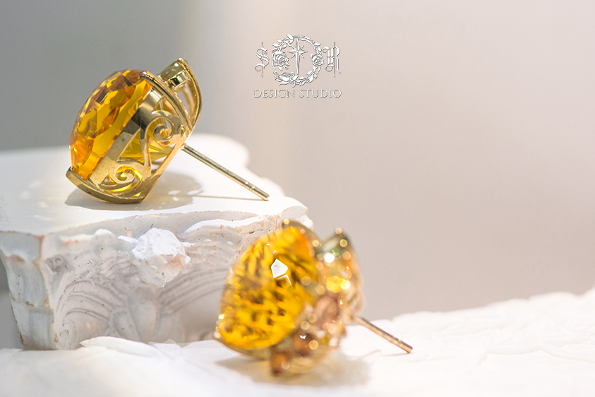 E027灿金叠韵 黄水晶配蓝宝石耳钉