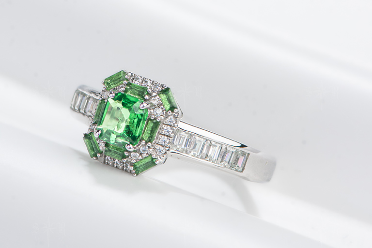 R052翠影方华 中性款沙弗莱戒指